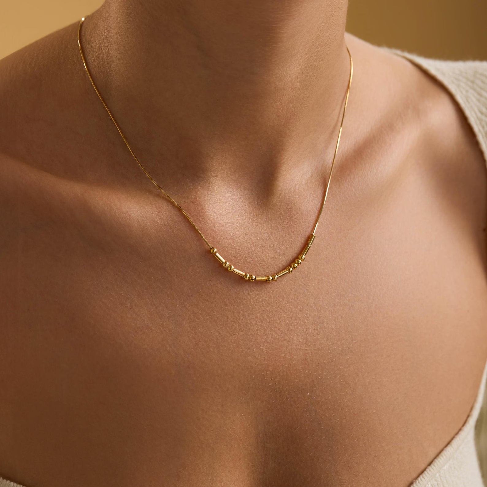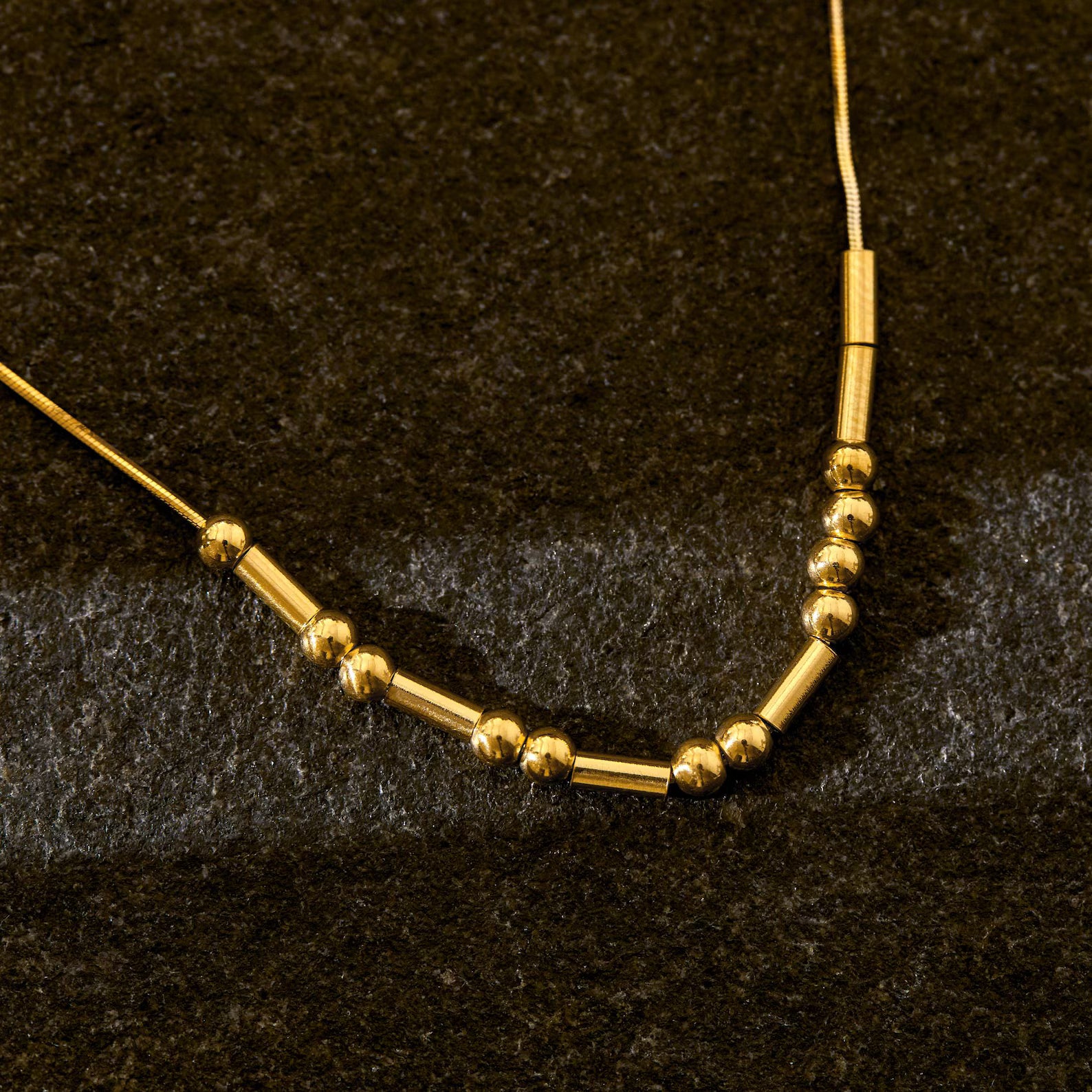 Nos colliers sont fabriqués en acier inoxydable 316L de qualité supérieure, recouverts d’un plaquage or 14K selon un procédé moderne (PVD).